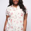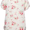 Plus Size Womens Floral Print Bib Shirt With Short Rolled Sleeves Size 16 Cream