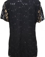 Plus Size Womens Lace Sequin Lined Ladies Sleeve Party Crochet Top – Black – 12 / 14