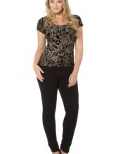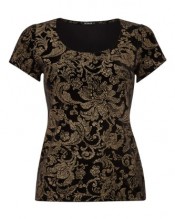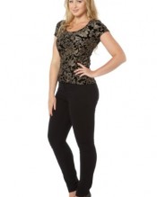 Roman Women’s Floral Print Velvet Top Black Size 10