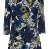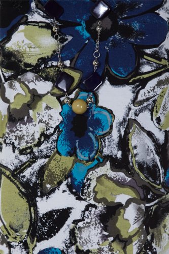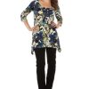 Roman Women’s Floral Printed Long Tunic Top FREE Necklace Blue Size 10