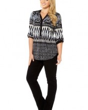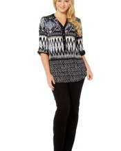 Roman Women’s Printed Mock Placket Top Grey Size 12
