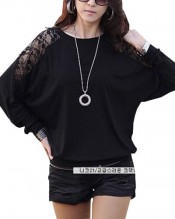 SAVFY Womens Ladies Stylish Sexy Hot Loose Batwing Dolman Lace Blouses Top T-shirt Fit UK Size 8-20, Batwing Style, Long Sleeves, Loose Style (L (UK12-14), Black)