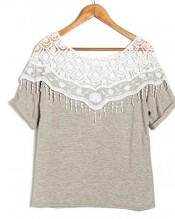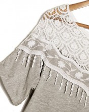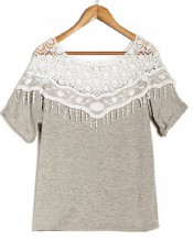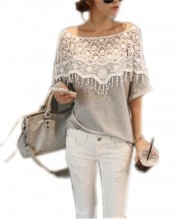 Feature: New Women’s Fashion Sweet Hand-Crocheted Shawl Hollow Collar Bat Sleeve T-shirt, Comfortable Material, Simple Gray.
