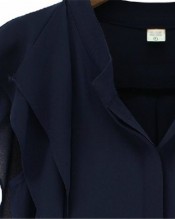 Sheinside Womens V Neck Ruffles Sleeve Chiffon Blouse (S, Navy)