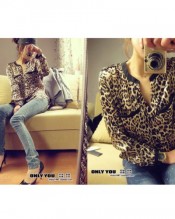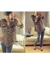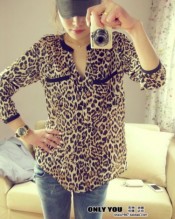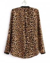 Thinkbay® Casual Women Cotton Top Blouse , Long-sleeved Oversized , Wild animal Leopard print Shirt , with 2 Chest pocket , Curved hem (M (US8/UK10/EU38))