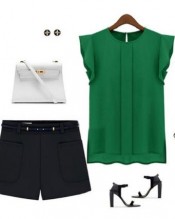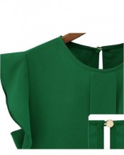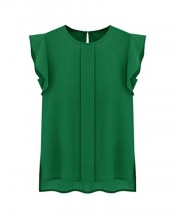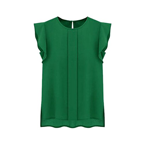 Ukamshop(TM)Green 1PC Casual Loose Chiffon Short Tulip Sleeve Blouse Shirt Tops(Asia XL)