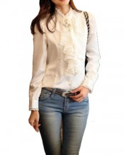 Women’s Clothes Ruffle Front Lace Collar Top Shirt Blouse