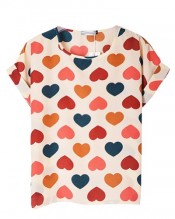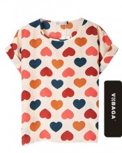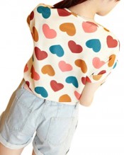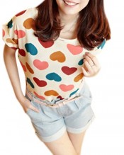 Vobaga Women’s Colorful Heart Print Short Sleeve Chiffon Top T-shirt Blouse L