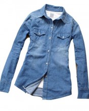 Womens Retro Long Sleeve Tops Jean Denim Vintage Shirt Top Blouse