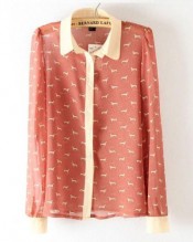 Vogue Women Long Sleeve Swan Red Lip Chiffon Casual Tops Blouse White Shirt S-L