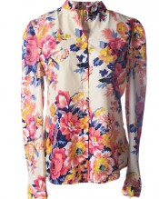 Women Girls Long Sleeve Stand Collar Button Down Floral Print Shirt Blouse Chiffon Blouse Tops Pink UK 12