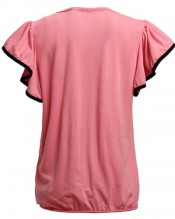 Women Ladies Casual Short Ruffled Sleeve T Shirt Blouse Vest Tops Pink,L/UK 14-16
