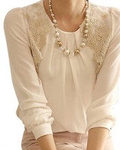 Women Lady Vintage Long Sleeve Sheer Tops Lace Shirt Chiffon Blouse