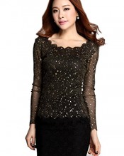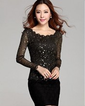 Women Sexy Slim Gauze Long Sleeve see through Party Evening Tops Blouse T-Shirt