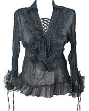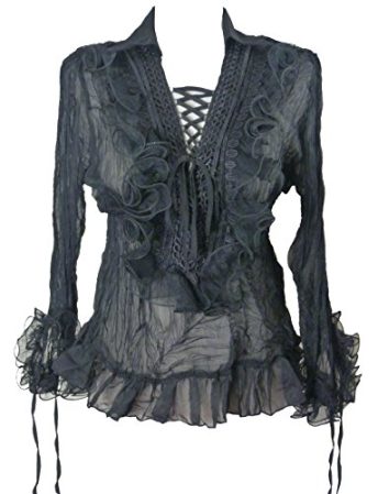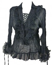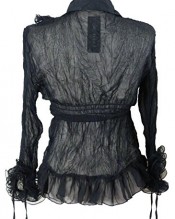 Womens Black sheer chiffon lace ruffle pirate gothic blouse-14-16 42-44