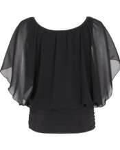 Womens Cape Chiffon Kimono Batwing Layer Long Top Insert Vest Blouse Tunic Party (Black,10)