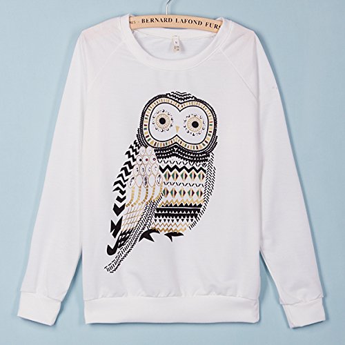 Feature: Womens Long Sleeve Owl Printed Shirts Tee Cotton Tops Blouse Beading Pullover, Have 4 Sizes. Very Wild And Fashion.