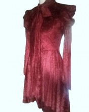 Women’s Dark Red Burgundy Gothic Victorian Steampunk Long Blouse Dress (12)