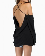 Women’s Fashion Sexy Back Crossed Straps Halterneck Off Shoulder Loose Chiffon Shirts Blouse Tops (L, Black)
