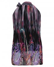 Womens Floral Paisley Pleated Chiffon Bow Tie HalterNeck Top Blouse Party Summer (Black,M/L)