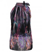 Work a day or evening look with this self tie halter neck top featuring an elasticated hem, sleeve less style completed with an overall baggy look. Sheer crepe chiffon fabric, floral Paisley print, lined, heavily pleated, halterneck tie fastening, sleeveless, A-line shape.