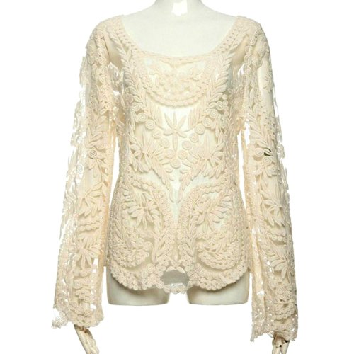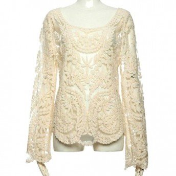 Women’s Lace Beige Retro Floral Knit Top Long Sleeve Crochet T Shirt 3811