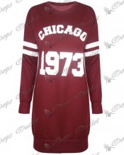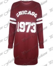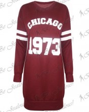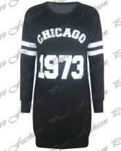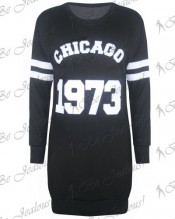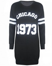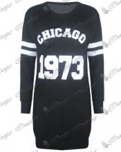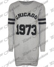 Womens Ladies 1973 Chicago Print Long Sleeves Baggy Dress Long Sweatshirt Top