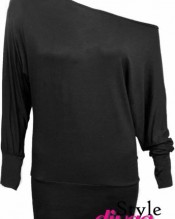 Womens Ladies Plain Batwing Off The Shoulder Top Black Size M/L