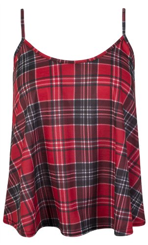 Womens Ladies Tartan Check Sleeveless Strap Camisole Cami Swing Vest Crop Top – RED TARTAN – UK 8/10(S/M) – (95% Polyester and 5% Elastane)