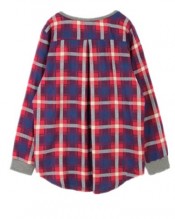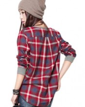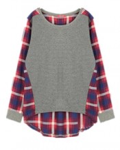 Women’s Red Plaid Grid Pattern Gray Loose Long Sleeve T Shirts (UK(M)-ASIA(XL))