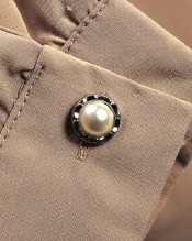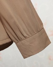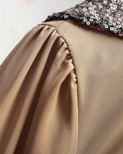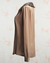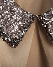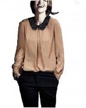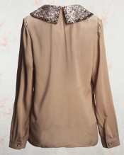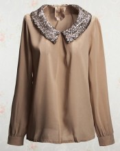 Womens Sequin Peter Pan Collar Long sleeve Chiffon Loose Shirt Blouse Tops Beige 12