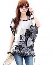 Womens Sexy Off Shoulder Batwing Sleeve Blouse Printed Oversize Loose Top Shirt With Belt 15 Styles 378
