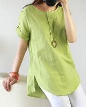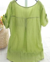 Women’s Summer Casual Linen Cotton Short Sleeve Shirt Blouse Top (XL ( UK L), Light green)