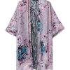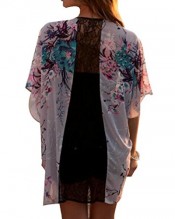 Women’s Summer Chiffon Lace Floral Pattern Short Batwing Sleeves Loose Kimono Cardigan Jacket Coat Blouse Shirts Tops