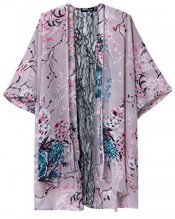 Chiffon Lace Splice Short Batwing Sleeves Loose Kimono Cardigan,Suitable for any Occasion.