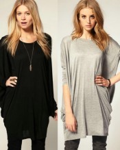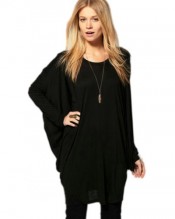 Zehui Women Batwing Sleeve Casual Over Size Blouse Tops Loose Cotton Long T Shirt Black UK14