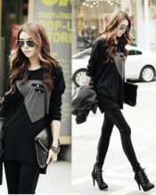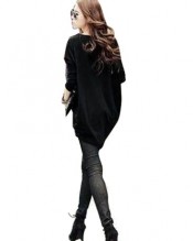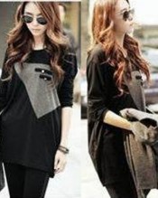 Zehui Women Long Sleeve Button Geometric Loose Shirt Blouse Tops Middle Long T-Shirt