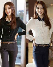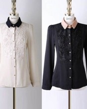 Zehui Women’s Lace OL Career Long Sleeve Chiffon Button Down Shirt Blouse Tops Black UK10