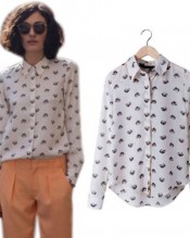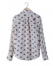 Zehui Women’s Lapel Button Leopard Head Printed Long Sleeve Chiffon Shirt Blouse Tops UK12