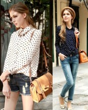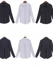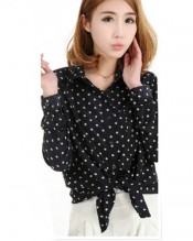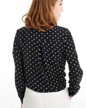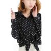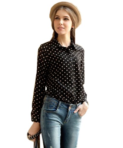 Zehui Women’s Lapel Polka Dot Button Shirt Chiffon Tops Long Sleeve OL Blouse Black UK10