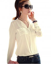 Zehui Women’s Solid Long Sleeve OL Career Chiffon Tops Blouse Button Down Shirt White UK8