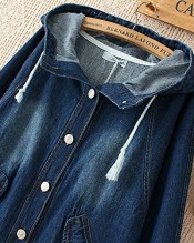 Alralel Women Autumn Denim Hooded Quilted Casual Loose Jacket Overcoat Coat One Size Blue