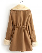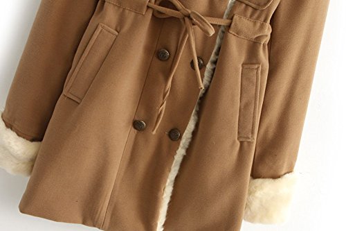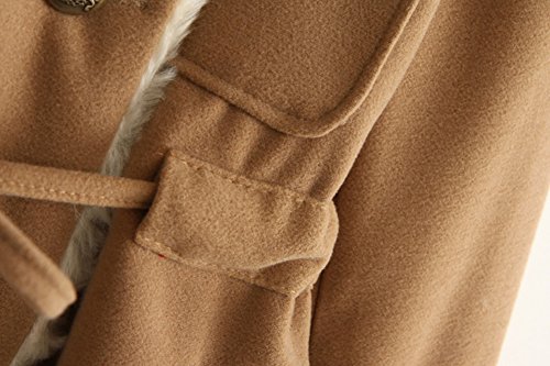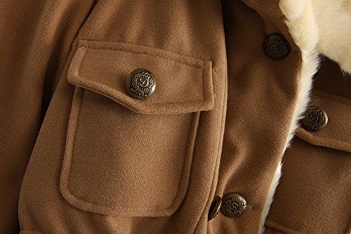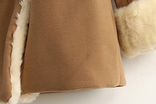 Alralel Women Winter Woolen Blend Fleece Cape Collar Quilted Padded Jacket Coat M Khaki
