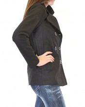 Azkara Women’s Classic Double-breasted Wool Blended Pea Coat Jacket (M / UK 12, 62057_BLACK)