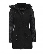 BRAVE SOUL LADIES FUR HOODED PVC SLEEVE FISHTAIL PARKA JACKET COAT BLACK 10