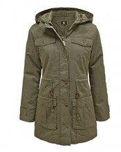 BRAVE SOUL LADIES WOMENS MILITARY VINTAGE RETRO ZIP PARKA JACKET COAT KHAKI 10