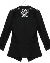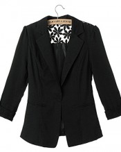 Candy Color Ladies 3/4 Sleeve Lace Slim Lapel Button Jacket Suit Coat Tops Outwear(Black,UK 10-12/Asia size XL)