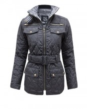 CANDY FLOSS QUILTED WOMENS BELTED PADDED GOLD ZIP JACKET COAT TOP 8-14