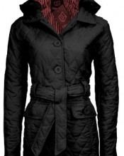 Catch One Womens Ladies Quilted Padded Button Hooded Winted Belted Jacket Coat Black S