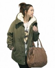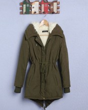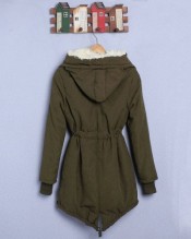 DEFA Tops Womens Coat Warm Long Sleeve Hooded Jacket Fur Wool Outerwear Casual Parka,Black,Army Green,UK Size 8 10 12 14 S-XL